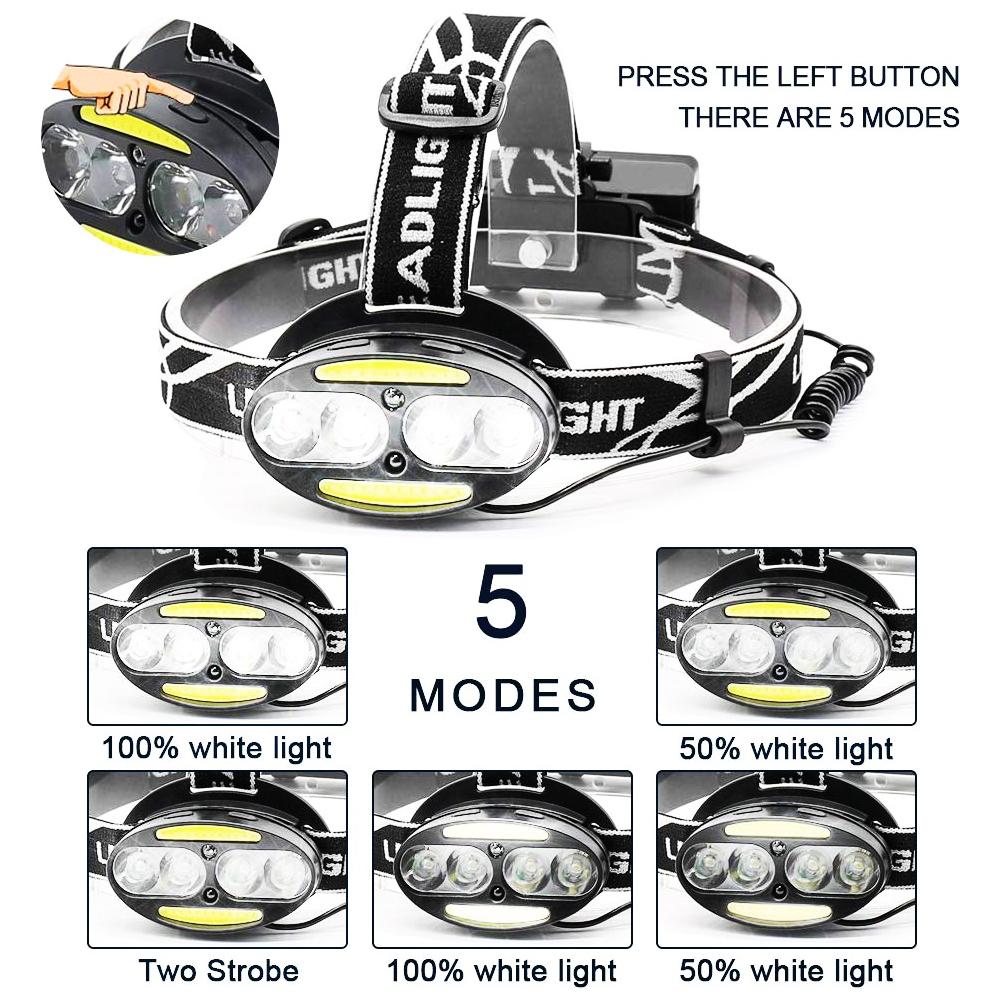 For Switch 1, it has 5 modes. 3 modes for T6, High Light- Low Light - Strobe, 2 modes for COB: High-Low