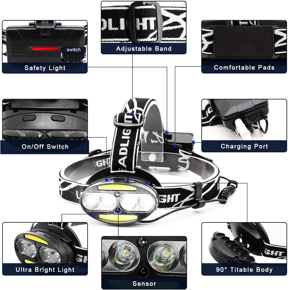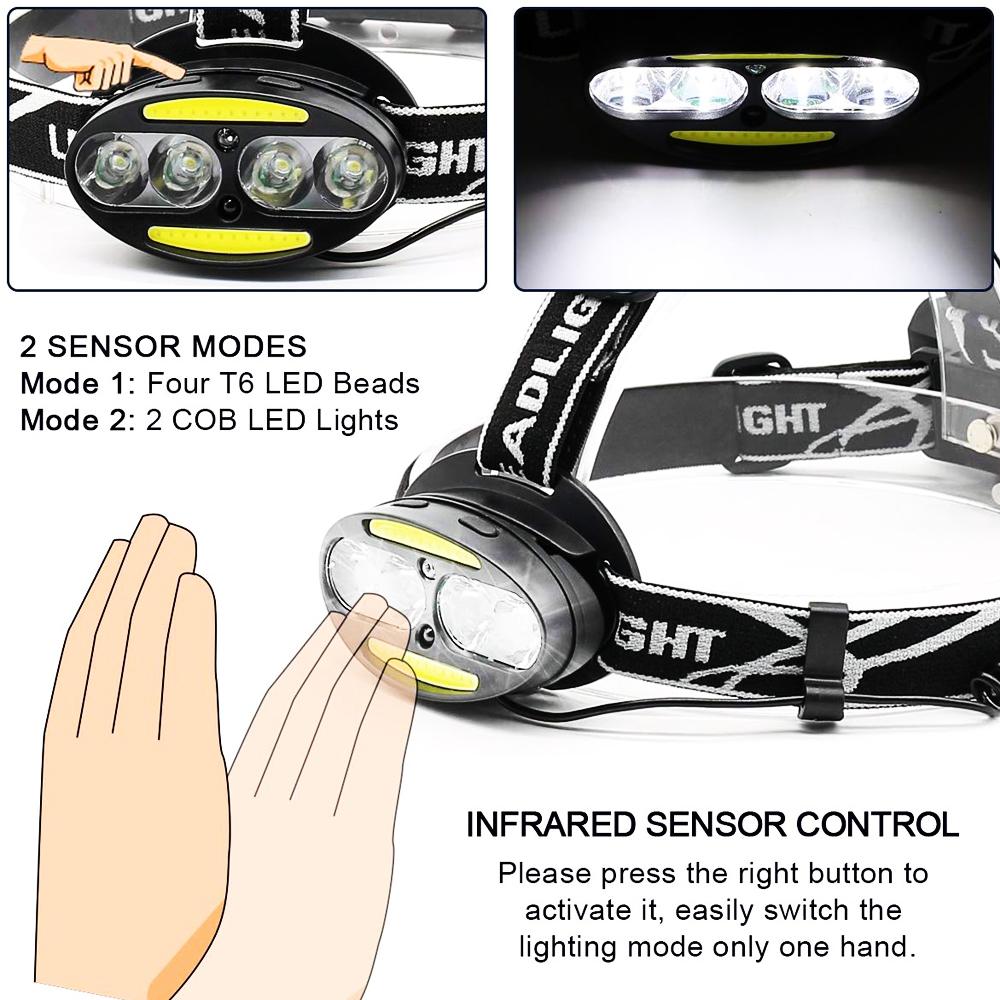 Mini Rechargeable COB LED Headlamp Body Motion Sensor Bicycle Head Light Lamp Outdoor Camping With USBMaterial: Aluminum+ABS plastic