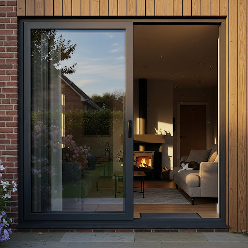 FireFoil's Wildfire Sliding-Glass Door Covers can be quickly deployed to the exterior and interior of glass doors to block against radiant heat and ember collection. Glass doors pose a significant danger during wildfires due to their vulnerability to breaking under radiant heat and ember exposure, allowing flames and embers to enter and ignite the home's interior.